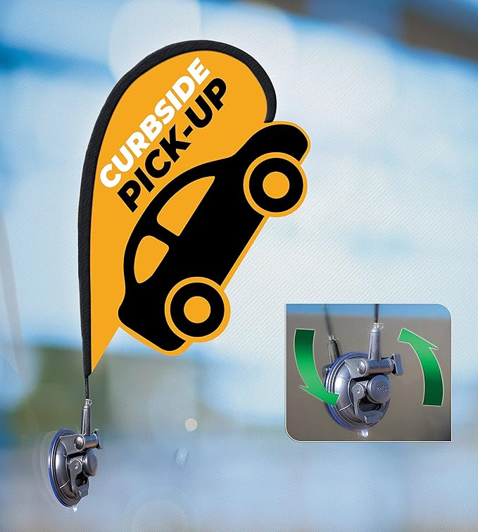 • 3D Window Flag Kit Includes: 1 - Open For Curbside Pickup Flag Kit with Suction Cup Attachment