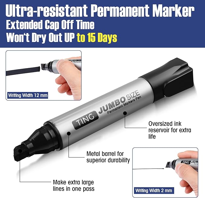 - Jumbo Size: the larger proportions offer increased ink capacity and extended lifespan; With dimensions of 4.9 x 0.9 inches or 12.5 x 2.3 cm, these permanent markers outlive standard ones; They facilitate smooth lines, making them ideal for crafting nice images or legible text