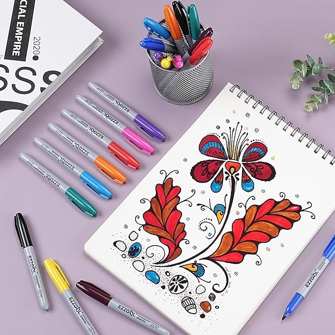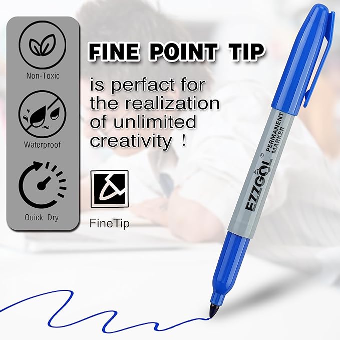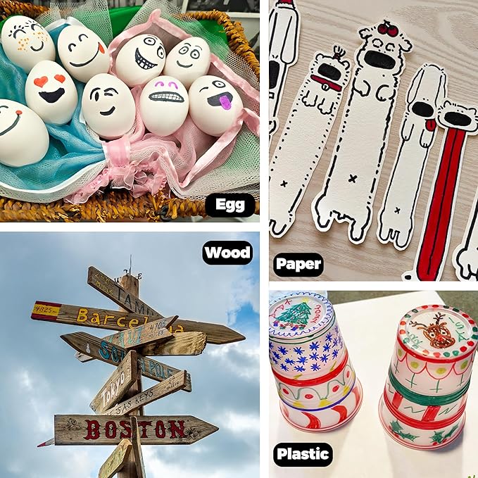 • Waterproof Markers, Work on Almost Any Surface: These fine tip permanent markers can be used on paper, plastic, cardboard, metal, and more.