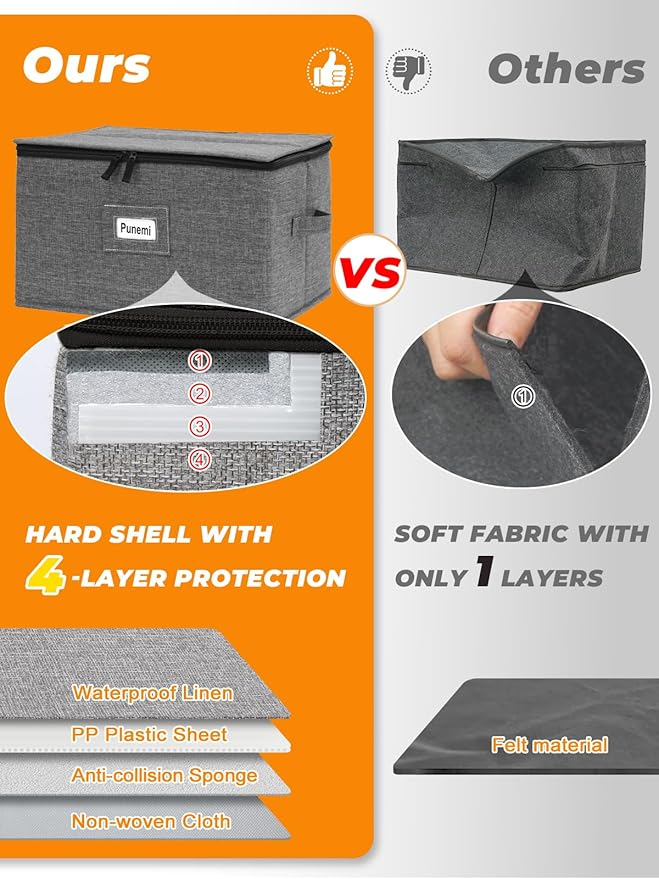 - MULTI-PURPOSE FOR ALL OCCASIONS: Use this china storage chest to safety store seasonal and special wine glasses, stemware, glasses, Christmas ornaments, small ceramic pieces and more. Also can be used as candle storage organizer, light bulb storage, snow globe storage container; The quality of the fabric ensures your stemware and glasswarestay clean, dust-free, and protected against the elements
